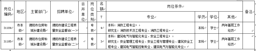 因工作需要,本次招聘市住建局下屬事業(yè)單位德陽(yáng)市建設(shè)工程質(zhì)量安全監(jiān)督站新增2個(gè)招聘崗位(綜合類),具體如下: